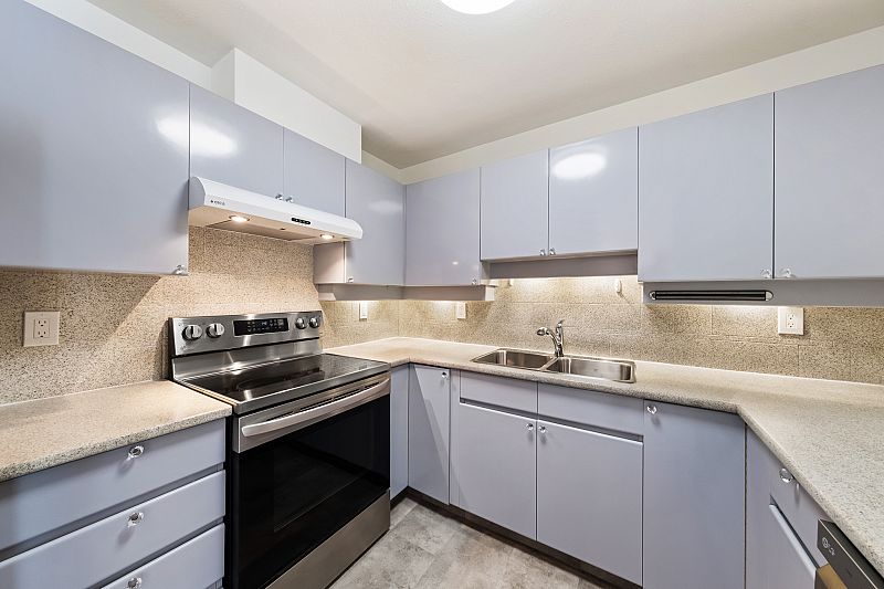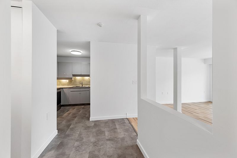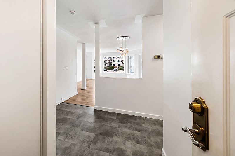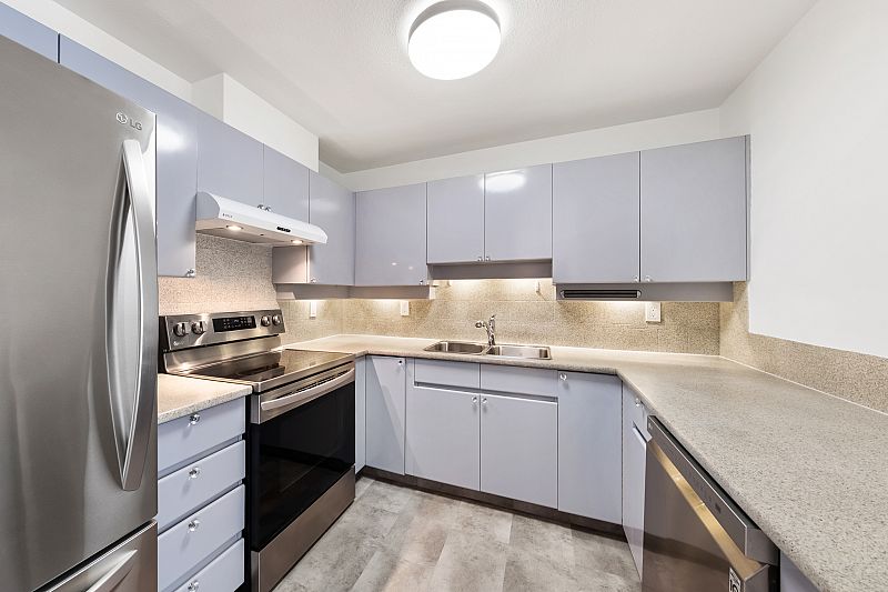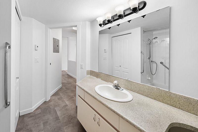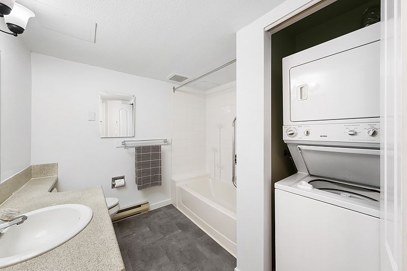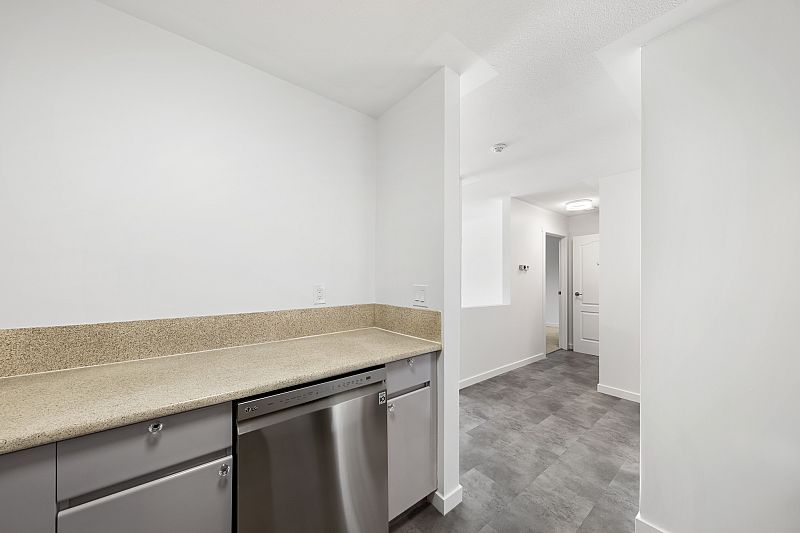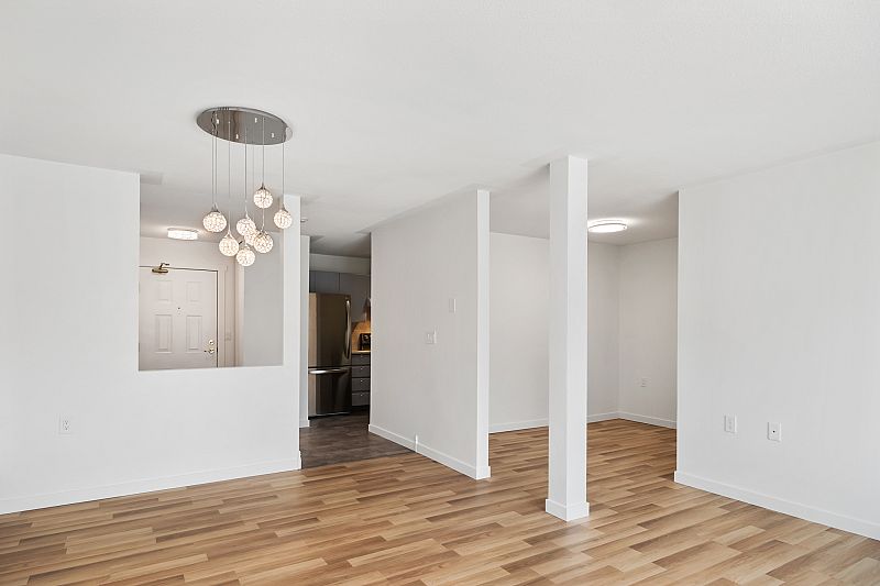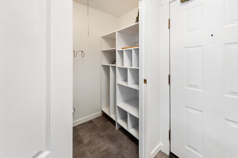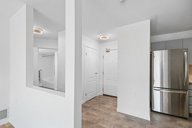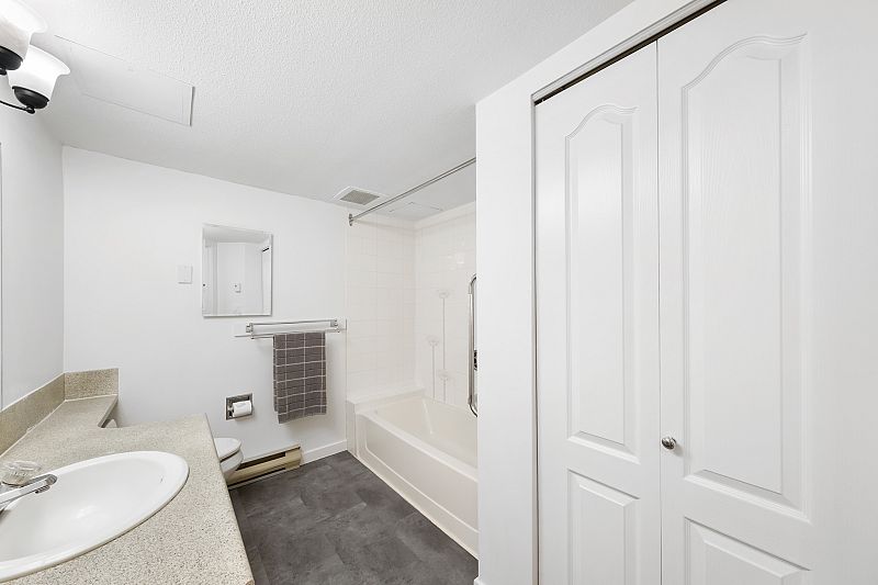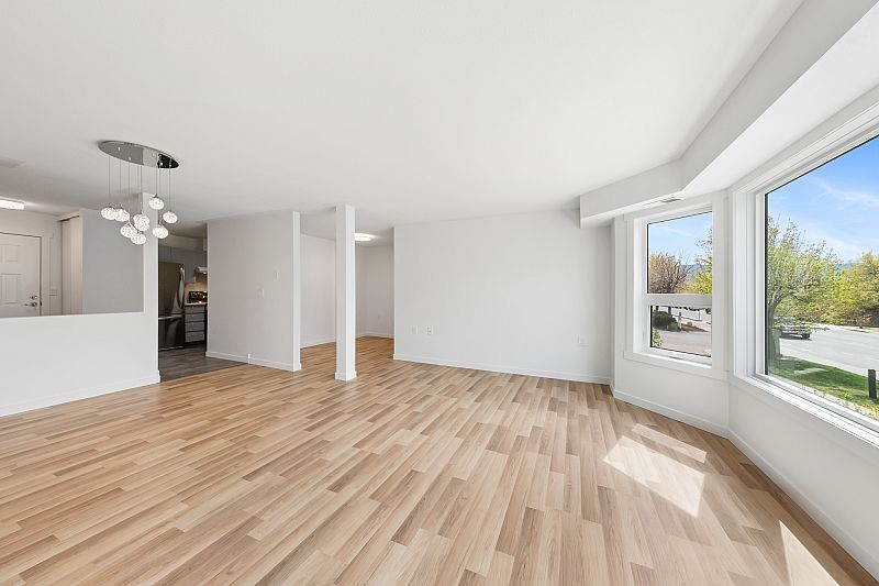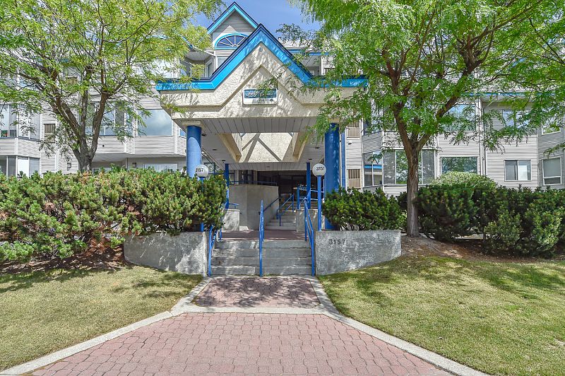 New Laminate & carpet, freshly painted, newer appliances. Views of the mountains, facing West. Super location in the complex being an end unit, no one below, close to; the entrance, storage locker, elevator. Storage in unit plus additional storage locker. Secure parking. Guest suite in the building.
